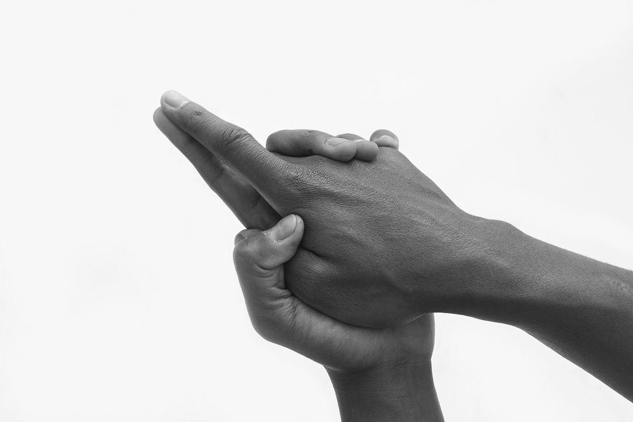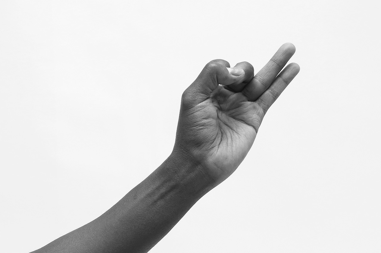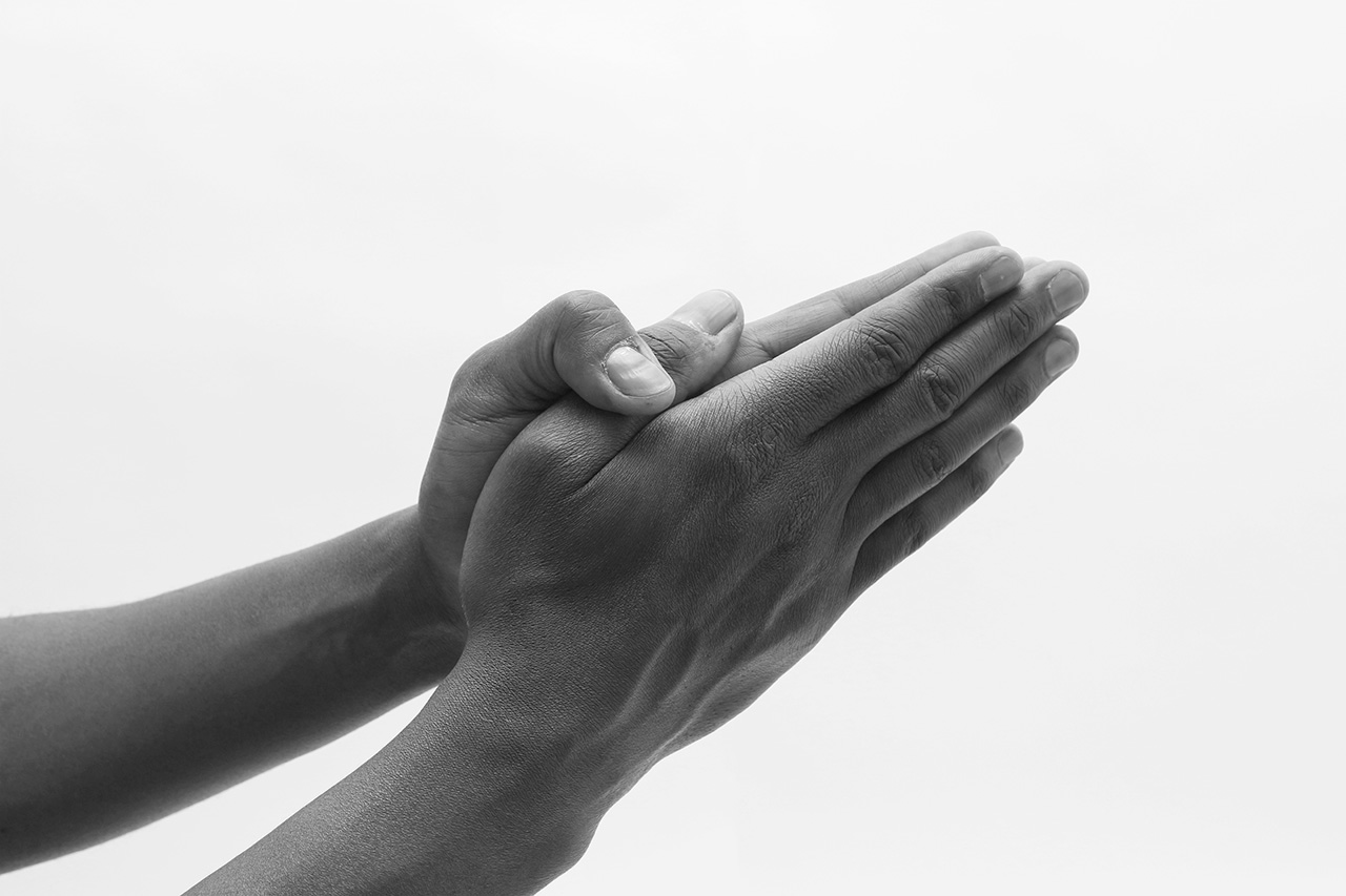 Ery Nzaramba demonstrating twelve Finger Exercises from the Egyptian Postures The Finger Exercises are part of the Egyptian Postures, the most advanced Mazdaznan exercises described by Dr. Otoman Zar-Adusht Ha'nish and taught to the first generation of Bauhaus students by Johannes Itten. The Finger Exercises are always illustrated in Mazdaznan publications unaccompanied by any explanatory text or instructions. Ha'nish claimed that the exercises he taught descended directly from the Pharaohs, and that they stirred the blood and rechanneled internal energy in ways that contributed to the perpetual evolution of humanity. The exercises were also said to result in auto-illumination, the participants body generating light from within that would be visible to any onlooker. The series of photographs that make up Ery Nzaramba demonstrating twelve Finger Exercises from the Egyptian Postures have been shown in several contexts, often as posters flyposted in the public realm. Like Ha'nish's original illustrations they appear unmediated, with no accompanying explanation or attempt to contextualise them.