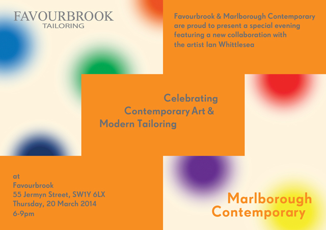 Seven Clouds Forming A new fabric designed and printed in collaboration with Favourbrook, London. The fabric has been made-up into a limited edition of 10 suit linings, the first of which was tailored for gallerist Andrew Renton. Launch event Thursday 20 March 2014, 6-9pm