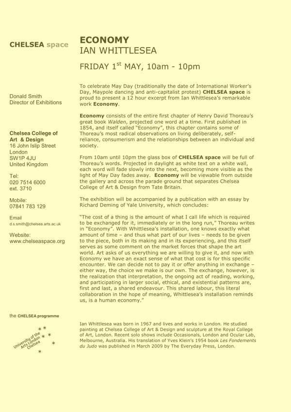 The first chapter of 'Walden' by Henry David Thoreau projected, one word at a time, each word fading into the next.