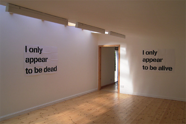 Hans Christian Andersen suffered from a powerful fear of being buried alive; at night he would sleep with a handwritten note by his bedside bearing the words ‘I only appear to be dead’. If we empathise with Andersen’s anxiety we must conceive of a world in which reality is to be grasped afresh each morning; where the lurid possibilities of the imagination blur the boundaries of appearance and essence so that he might have written ‘I only appear to be alive’. These two statements sit side by side in the gallery alongside the words: ‘The invisible is real’ an aphorism from the contemporary artist Walter De Maria that Andersen might have had some sympathy with.