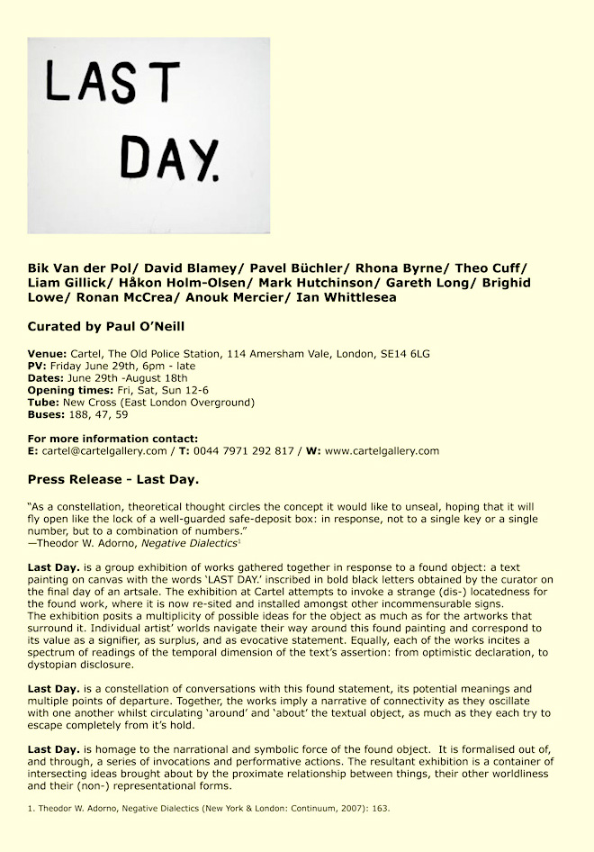 (1998, acrylic on canvas, 41 x 227cm) is part of the show Last Day, curated by Paul O'Neill at Cartel, London.