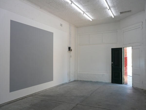 On each of the 15 days that he is in Melbourne Whittlesea will repaint an area of the wall of the Lab. Each day this square will be painted a darker shade of grey, until with the 15th coat of paint it finally becomes black. Inevitably the progress towards a black square references Malevich and Reinhardt, yet the shape might simply be an enormously enlarged full stop, the end of an unseen sentence.