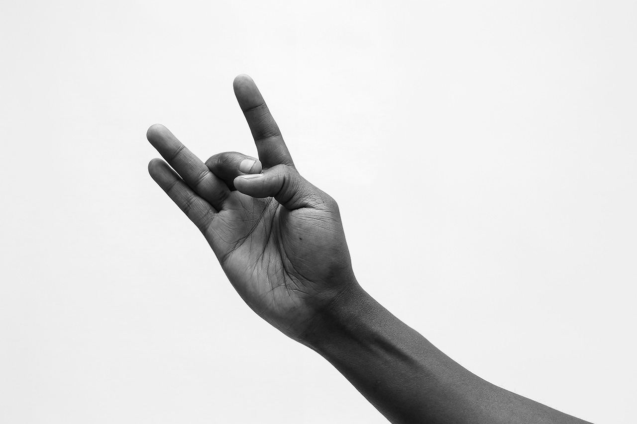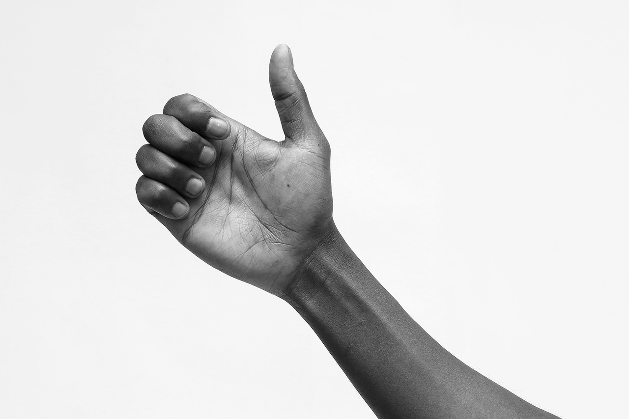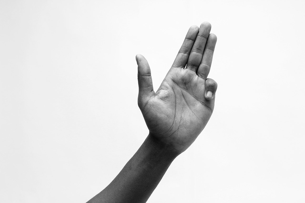 Ery Nzaramba demonstrating twelve Finger Exercises from the Egyptian Postures The Finger Exercises are part of the Egyptian Postures, the most advanced Mazdaznan exercises described by Dr. Otoman Zar-Adusht Ha'nish and taught to the first generation of Bauhaus students by Johannes Itten. The Finger Exercises are always illustrated in Mazdaznan publications unaccompanied by any explanatory text or instructions. Ha'nish claimed that the exercises he taught descended directly from the Pharaohs, and that they stirred the blood and rechanneled internal energy in ways that contributed to the perpetual evolution of humanity. The exercises were also said to result in auto-illumination, the participants body generating light from within that would be visible to any onlooker. The series of photographs that make up Ery Nzaramba demonstrating twelve Finger Exercises from the Egyptian Postures have been shown in several contexts, often as posters flyposted in the public realm. Like Ha'nish's original illustrations they appear unmediated, with no accompanying explanation or attempt to contextualise them.