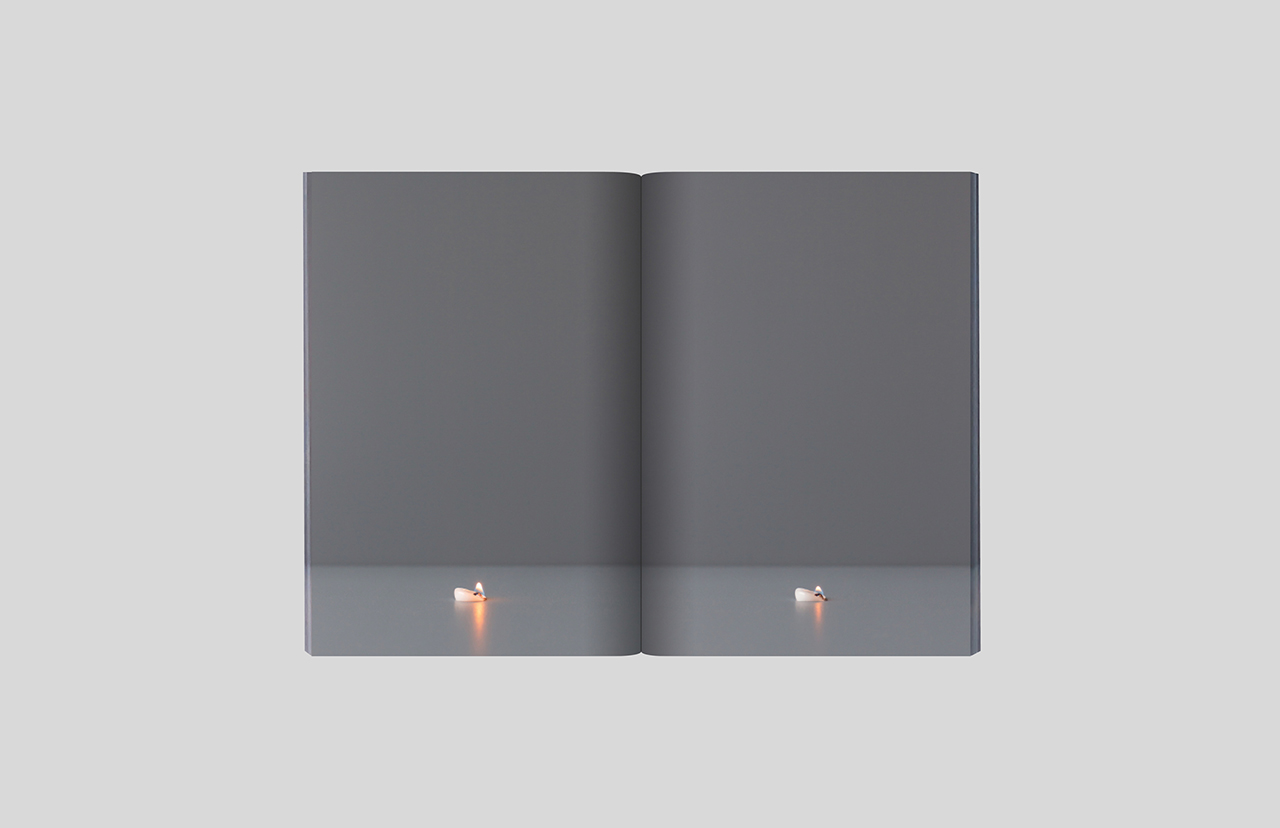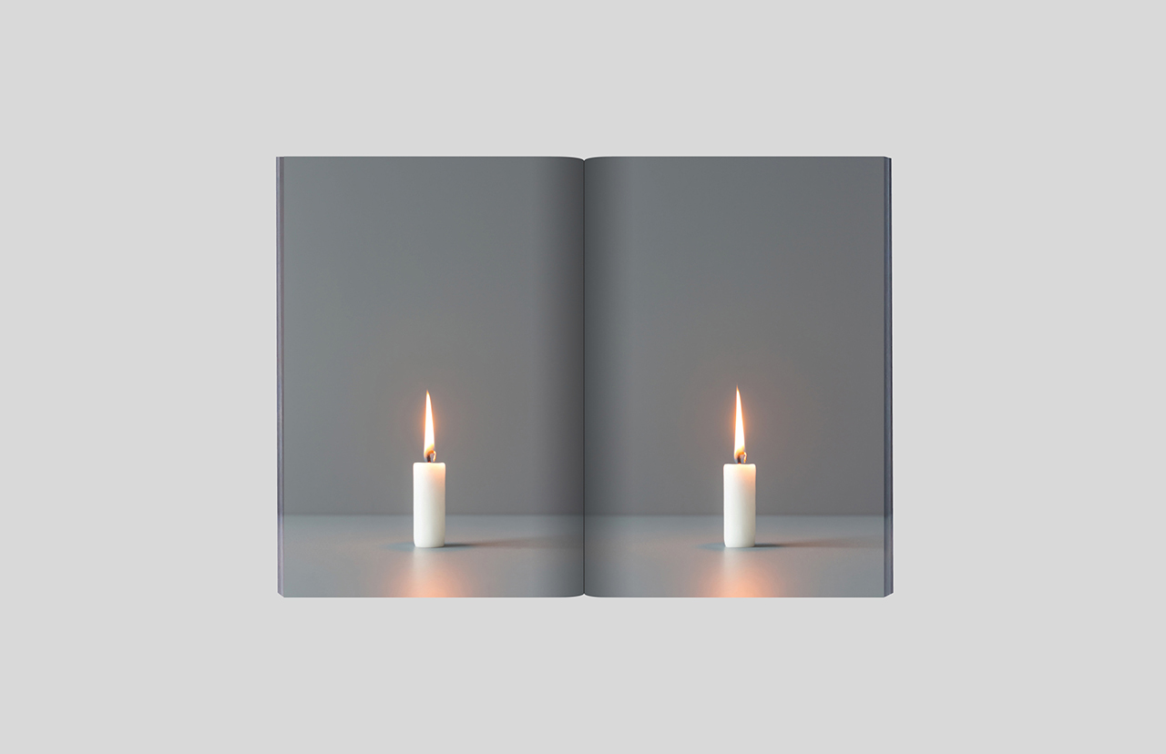 All of which is a suggestion as to why this book exists. What it does is another matter. Trataka consists simply of two hundred photographs of a candle as it burns in daylight. Although it resembles a series of stills from a film each photograph was taken individually, necessitating six hours of concentration and attention to ensure the exposure was adjusted and the shutter depressed every two minutes. The photographs record the subtly changing light of a passing November day, as well as the gradual disappearance of the candle’s physical form. Wax is consumed by flame and a solid object converted to light and heat. The final photograph shows the moment the flame goes out. A trace of white smoke rises from the extinguished candle wick.